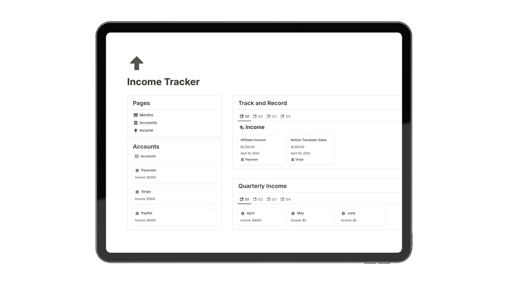 Unlock a clear view of your financial inflows with this Income Tracker Notion template.