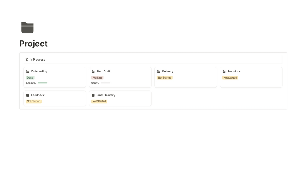 Divide your project into multiple stages (eg, Onboarding, Delivery, Feedback, Revisions, etc)