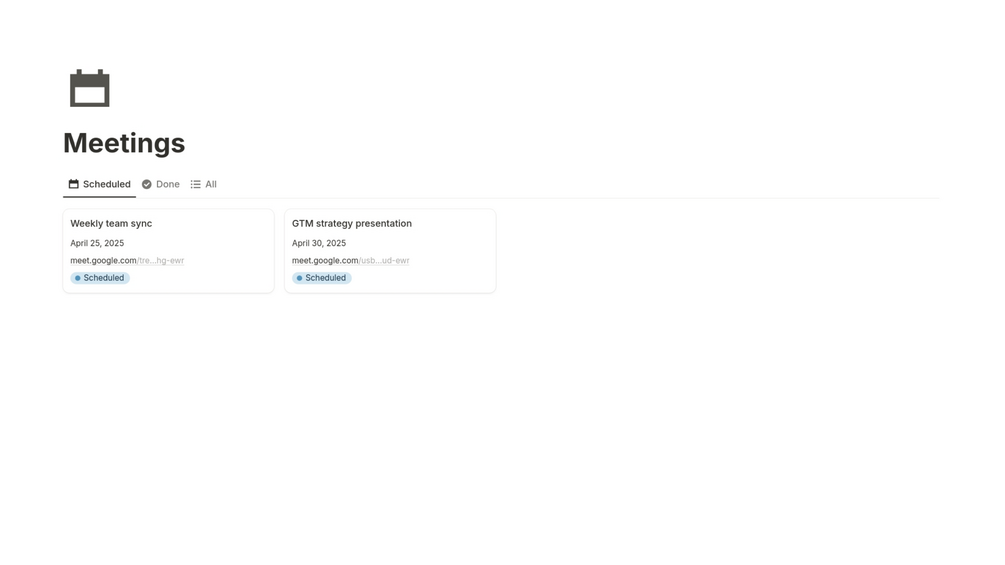 Effortlessly manage and track all your meetings and stay on track with deadlines, write down meeting notes easily within a simple and clean dashboard