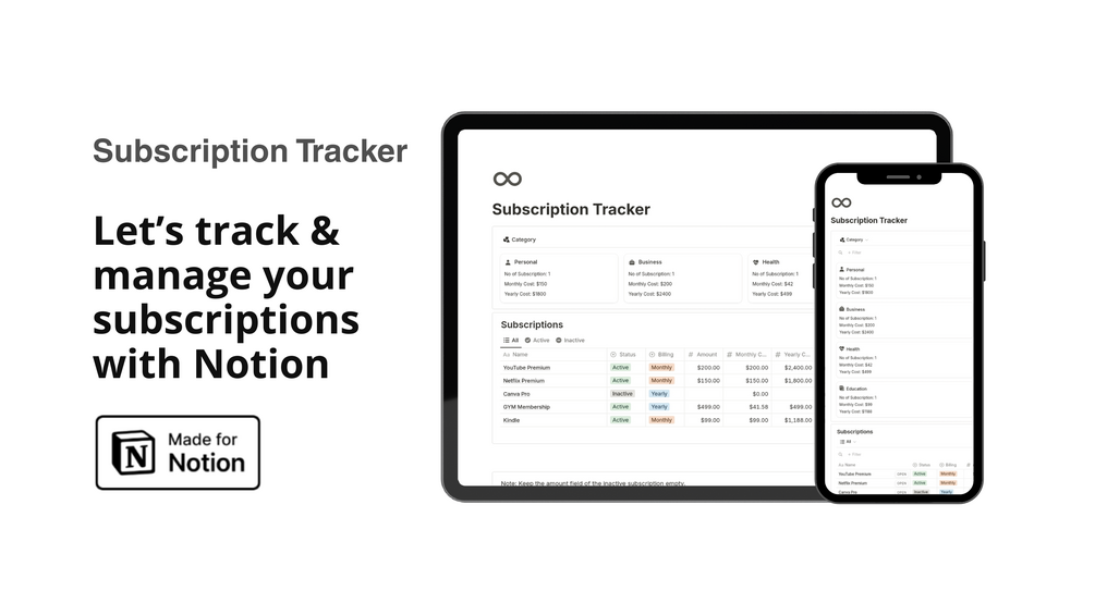 Reclaim your budget and simplify your life. Get organized with the Subscription Tracker Notion template today!